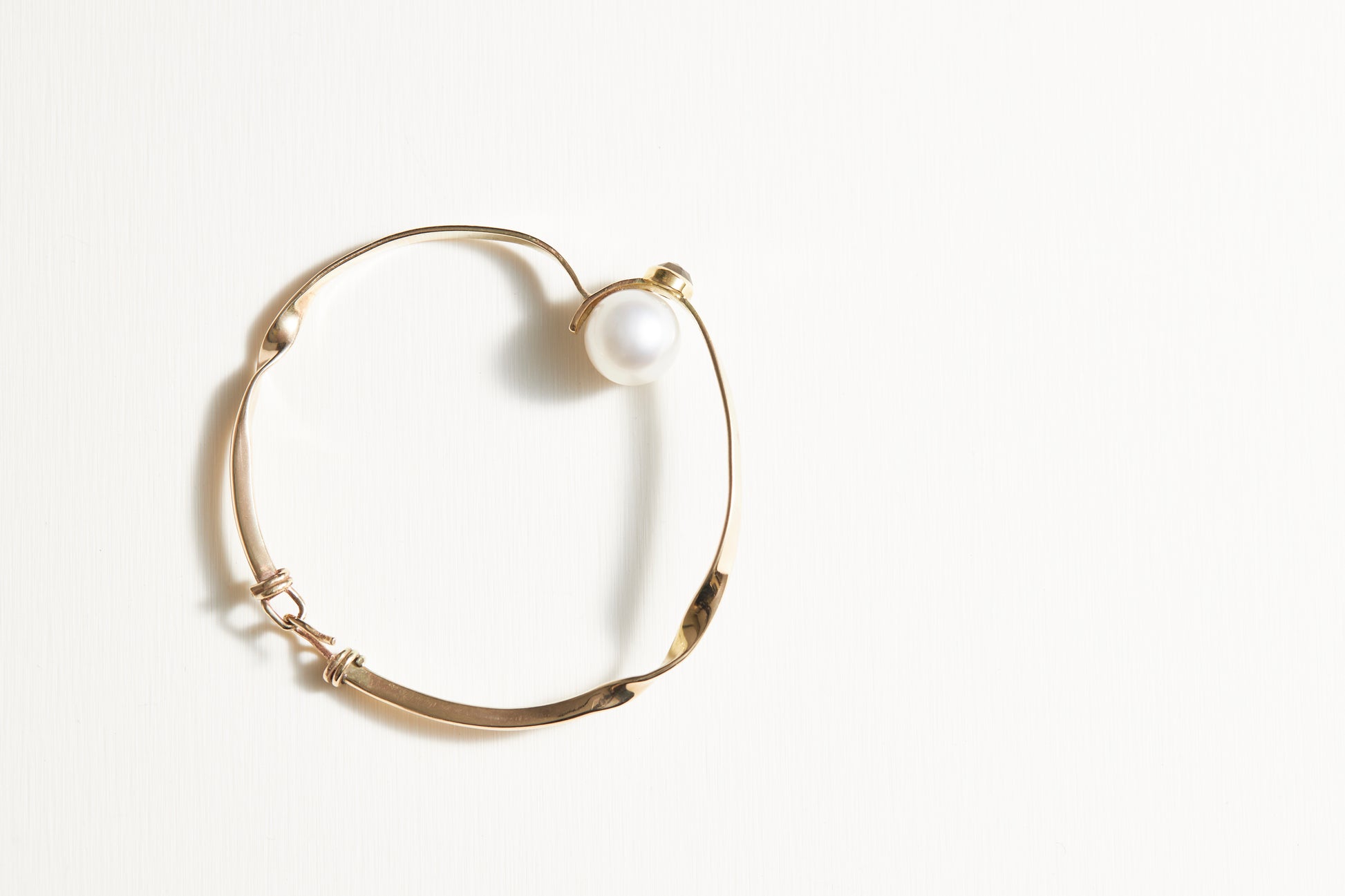 Curving, bending, and twisting - the Moon Garden Bangle design embodies movement and beautiful natural materials. The line of gold is set with a precious South Sea pearl and a salt and pepper diamond. It can be worn alone or stacked with my Ray Bangle.